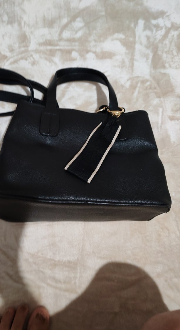 Siyah deri püsküllü kadın çanta, düzgün yüzeyli ve klasik Paris tarzında, günlük kullanım için uygun. En 24 cm boy 20 cm resimde görüldüğü gibidir herhangi bir sorunu mevcut değildir