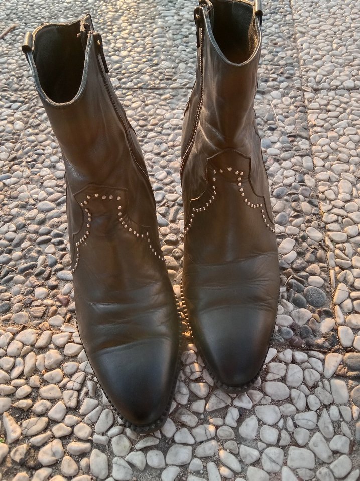 Siyah deri kadın bot, detaylıdır. Rock punk tarzıyla günlük kullanıma uygundur, desenli ve şık.
