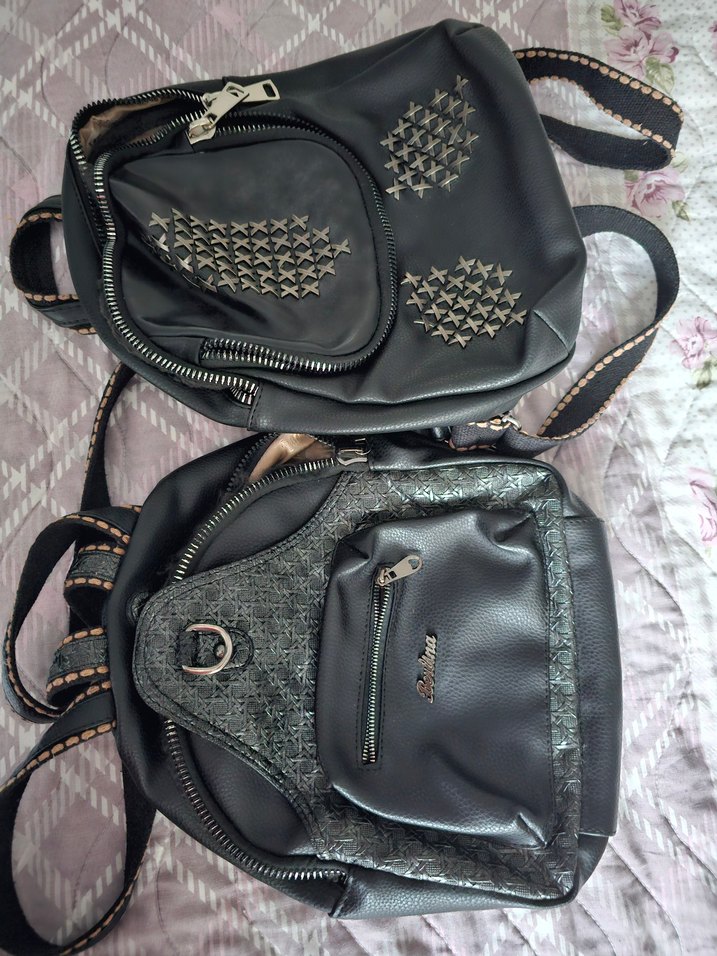 Siyah deri sırt çantası, tokalı detaylar ve nakış desenlerle rock punk tarzını yansıtıyor. Günlük kullanıma uygun şık bir model.