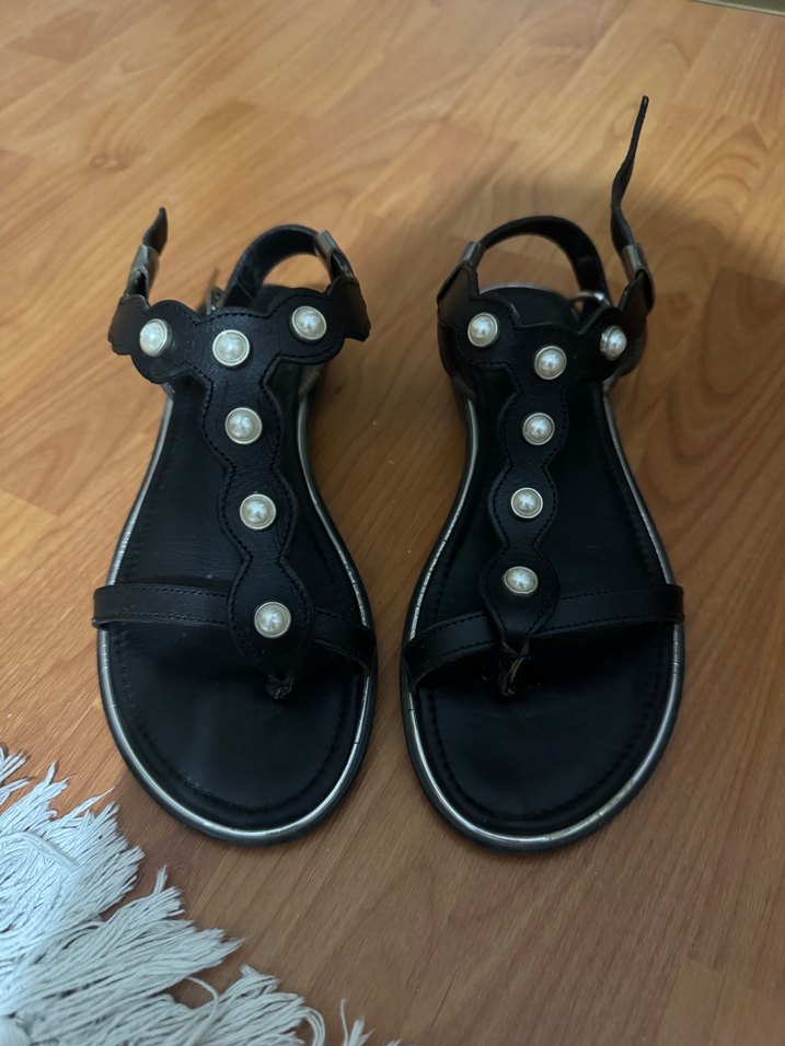 Siyah Deri Sandalet