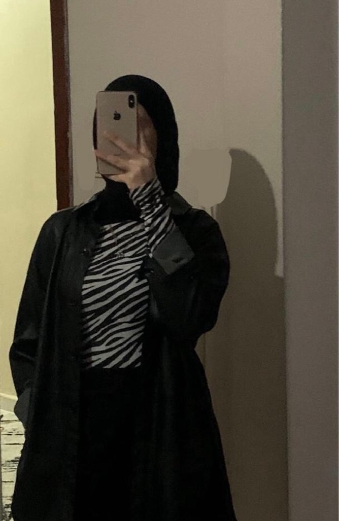 Fitted kesim, yüksek yakalı ve uzun kollu siyah deri şeffaf kadın yağmurluğu. Koyu zebra desenli, trend ve gotik tarzda.