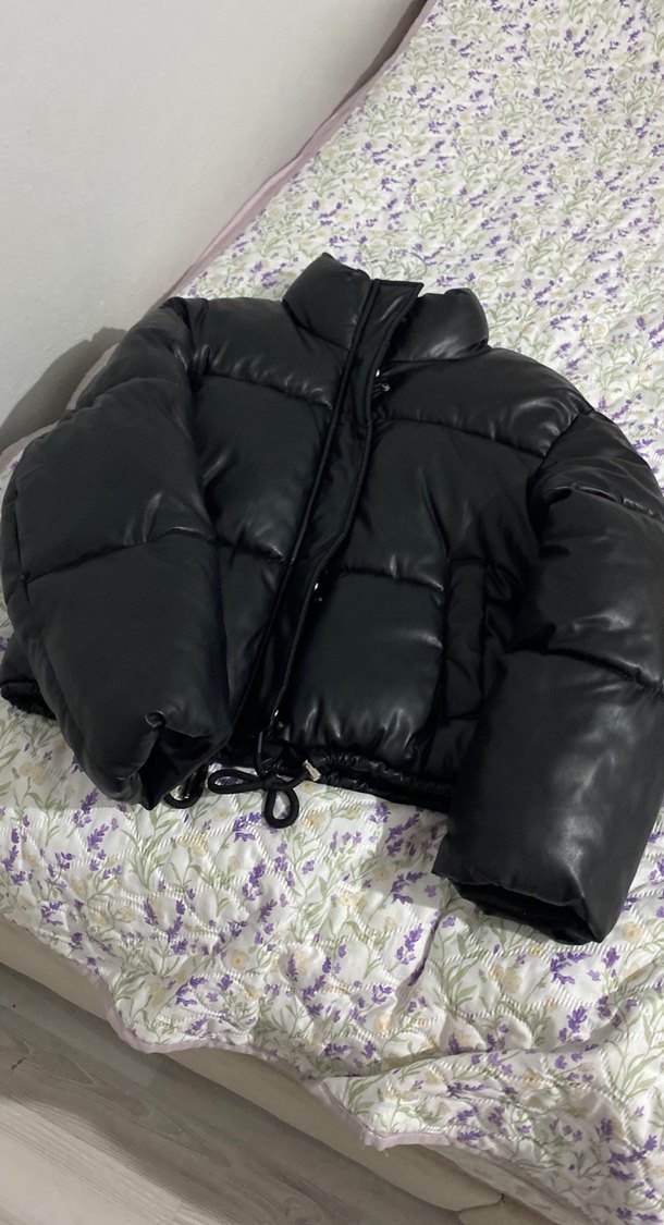 Siyah Deri Şişme Kadın Kışlık Ceket