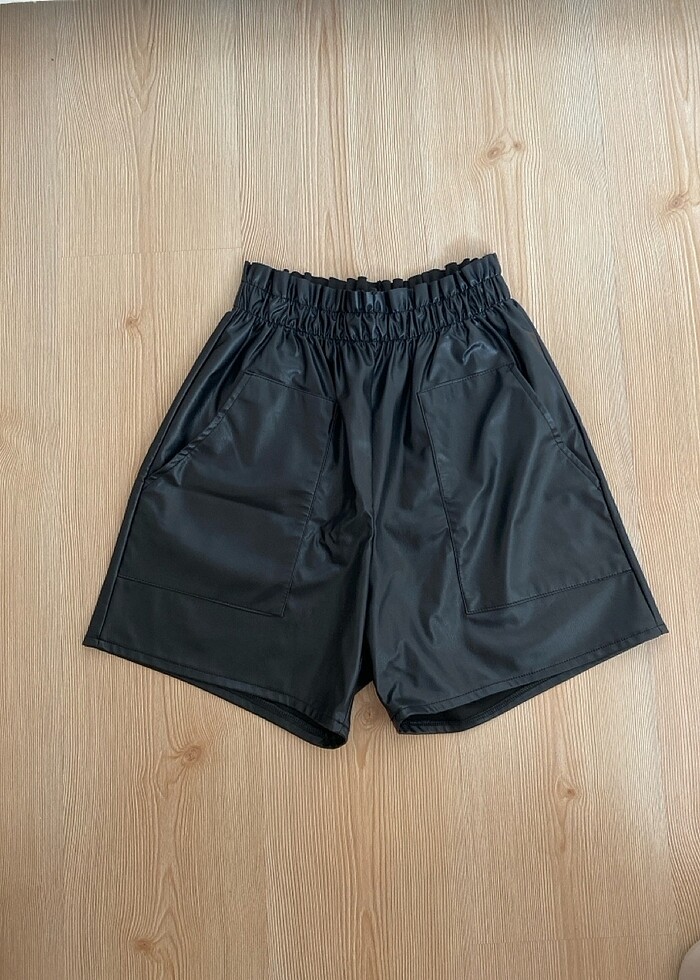 Siyah deri şort