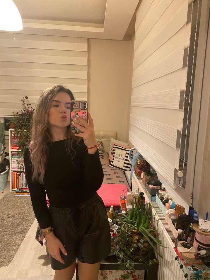 Siyah deri şort