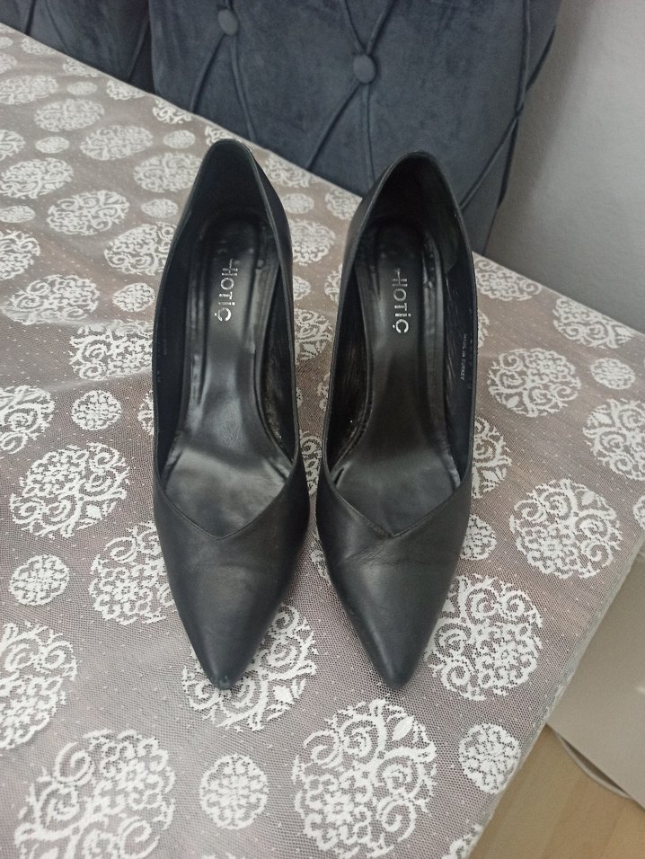 Hotiç siyah deri stiletto ayakkabı 40 numara için uygundur 2-3 defa giyildi hiçbir sorun yok. topuklu pek giymediğim için satıyorum