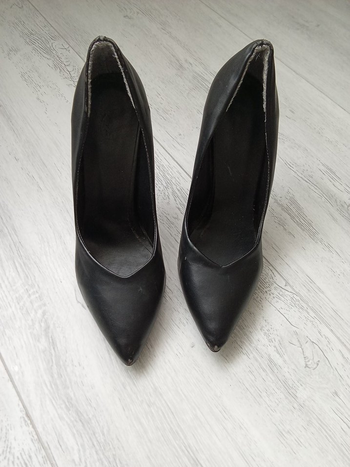 Siyah Deri Stiletto Topuklu Kadın Ayakkabı