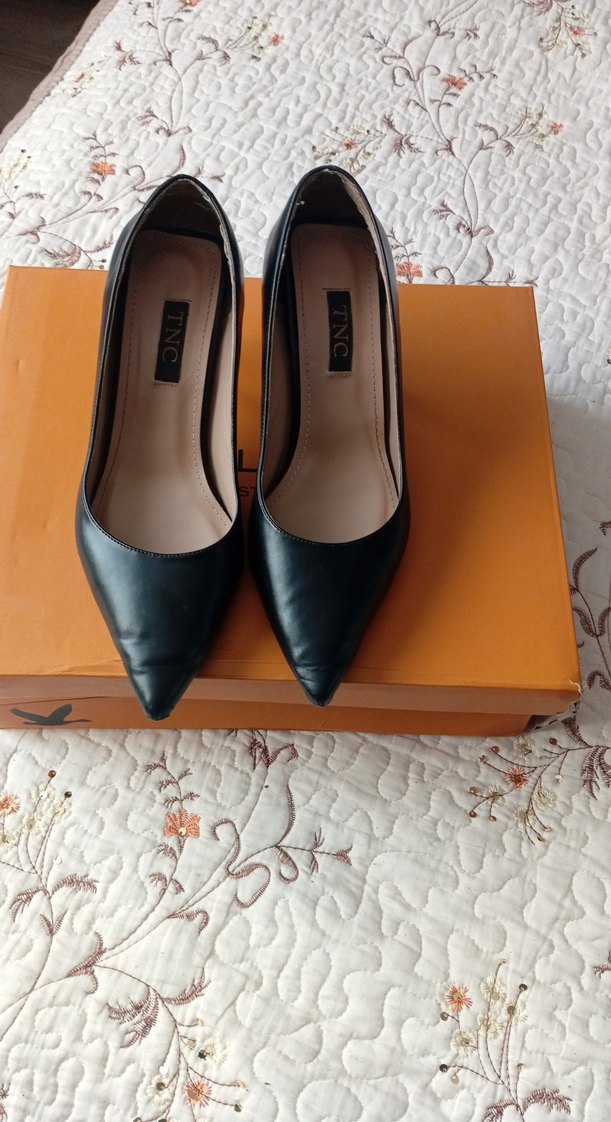 Siyah deri stilettolar, tokalı detaylı, ofis kullanımı için uygun. Sivri burunlu, klasik ve zarif normcore stili ile.