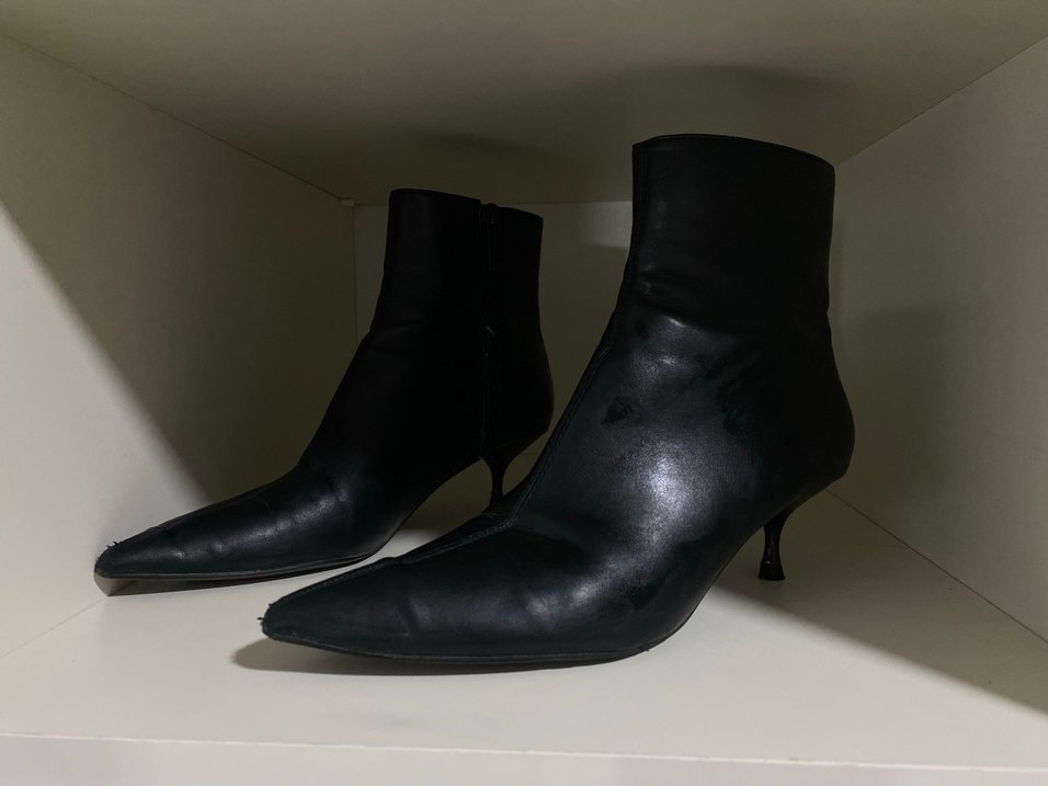 Siyah Deri Stiletto Topuklu Kadın Bot
