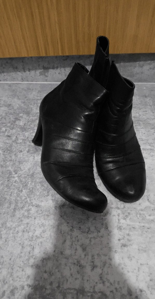 Siyah deri, stiletto topuklu, yandan fermuarlı tarzıyla günlük kullanım için uygundur.