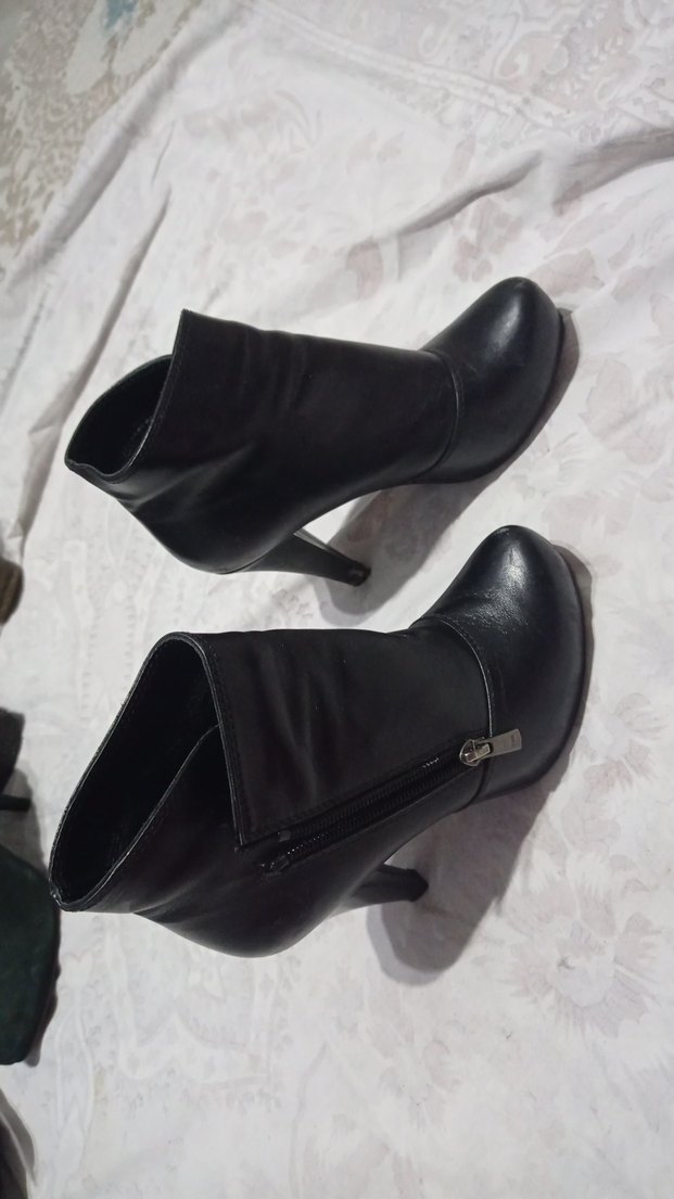 Siyah Deri Stiletto Topuklu Kadın Bot