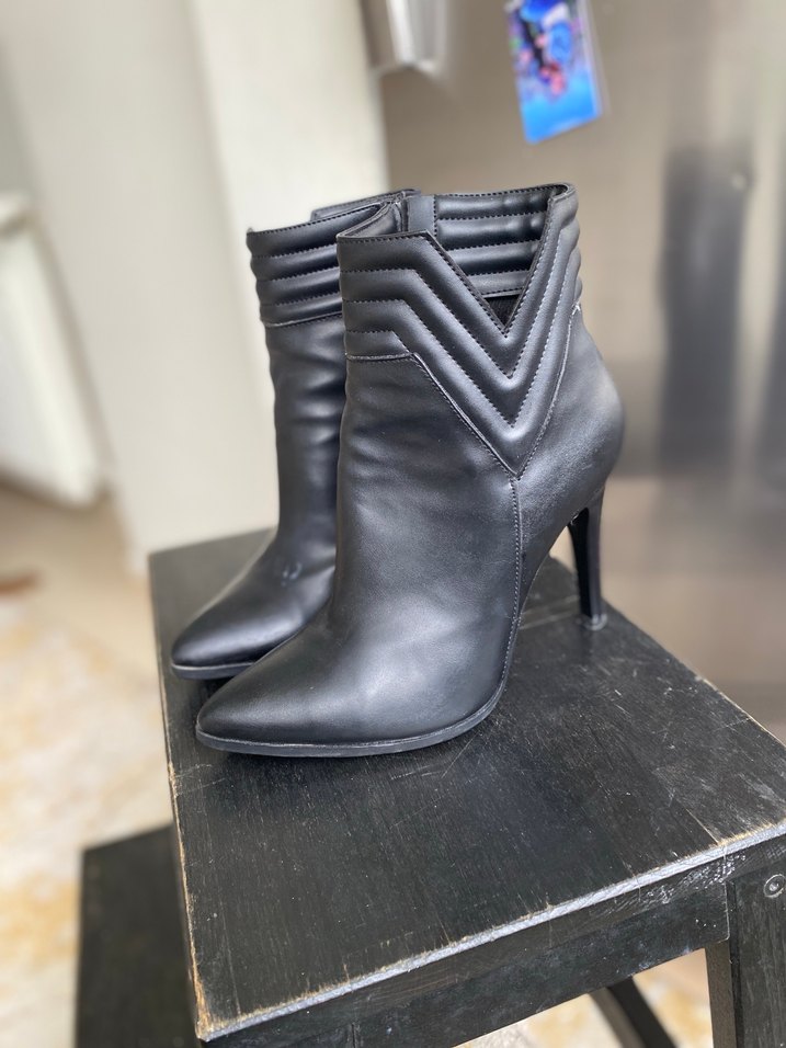 Siyah Deri Stiletto Topuklu Kadın Bot