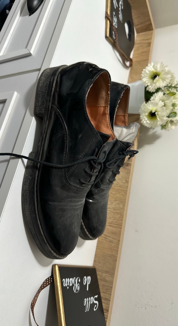 Siyah deri, stiletto topuklu, tokalı kadın klasik ayakkabılar, desen içermeyen sade tasarımla günlük kullanım için uygundur.