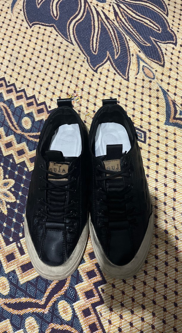 Sokak stiline uygun, koyu siyah renkte erkek bağcıkları.