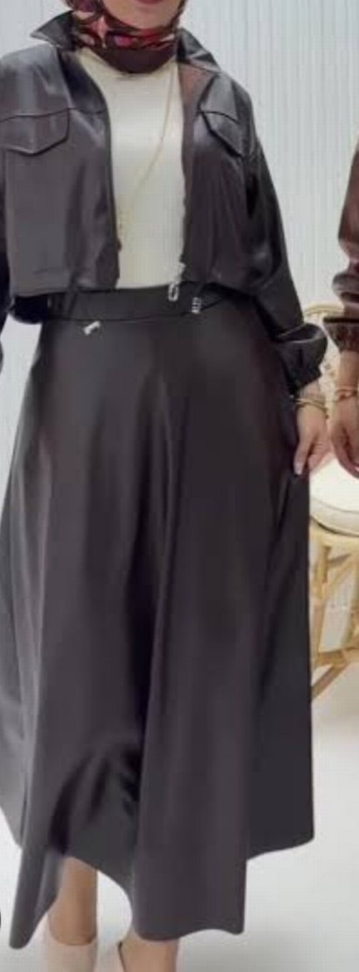 Siyah deri etek takımdır. xl beden. tesettür giyime uygun.