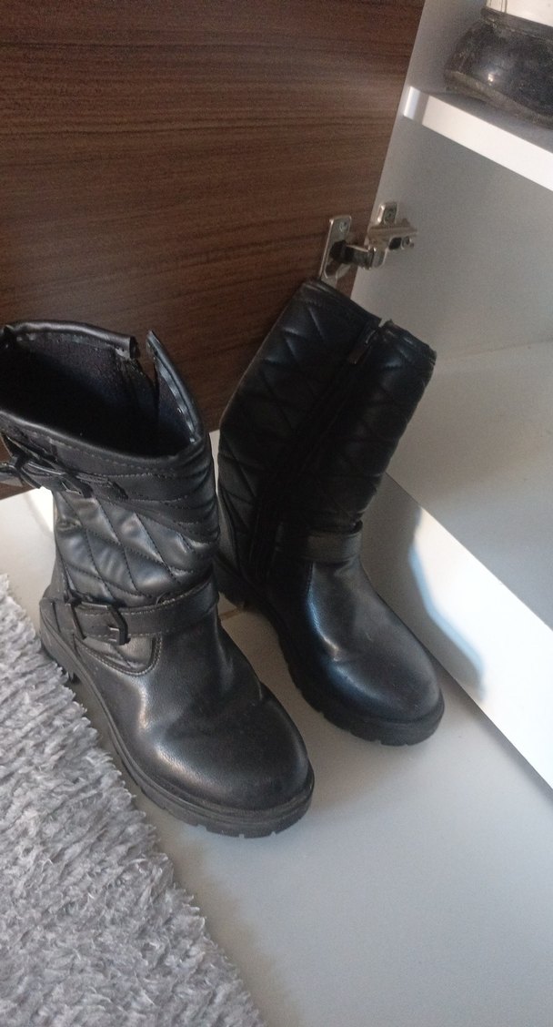 Tokalı detaylı siyah deri biker botlar, blok topuklu, trend sokak stili için uygun.
