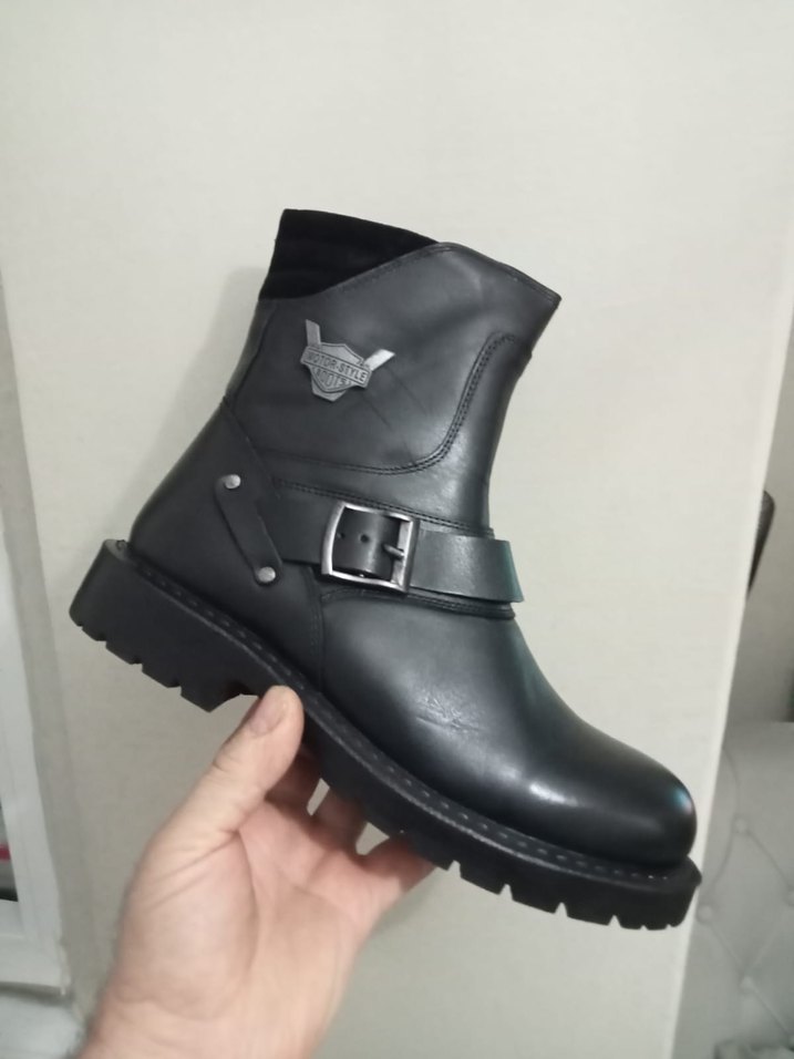 Siyah Deri Tokalı Biker Erkek Bot