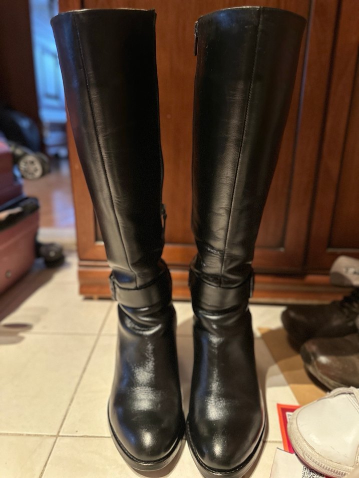 Siyah deri, tokalı ve kalın topuklu dizaltı kadın çizme. Gotik tarzda, klasik şıklık sunar ve ofis kullanımına uygundur. Ürünün hiçbir kusuru yoktur. Çok şık özel üretim deri çizmedir. Kalın topukludur, topuk boyu 6 cmdir. İçi polarlıdır üşütmez. Tabanı ortapediktir yormaz.