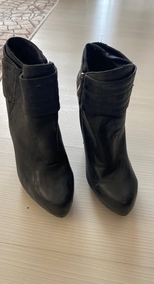 Siyah Deri Tokalı Dolgu Topuklu Kadın Bot