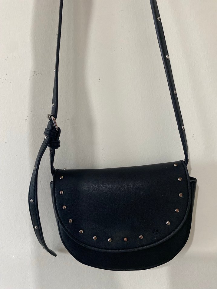 Siyah Deri Tokalı Gotik Kadın Çanta