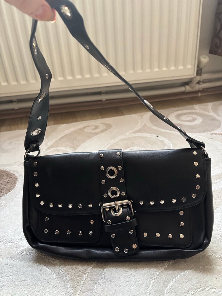 Tokalı ve perçin detaylı siyah deri kadın çantası, gotik tarzıyla romantik akşamlar için uygun. Sadece mıknatısı yok 2.resimde görüldüğü gibi ama kullanılıyor sorun olmuyor, onun dışında sağlam. Son fiyat