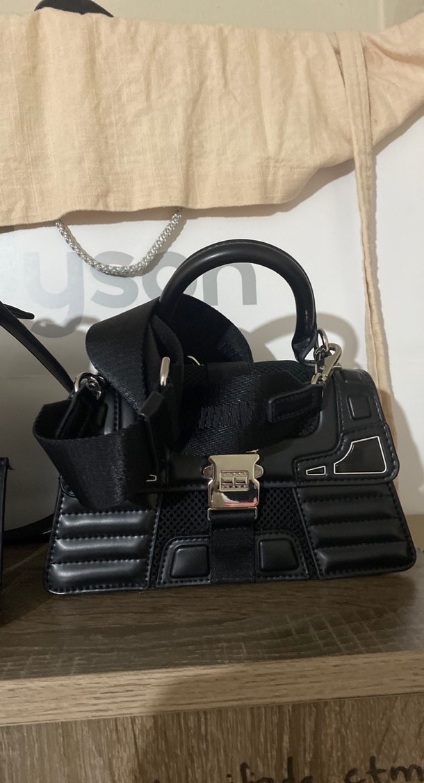 Siyah Deri Tokalı Gotik Kadın Çantası