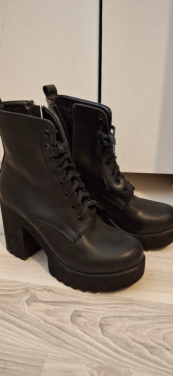 Siyah Deri Tokalı Gotik Topuklu Bot