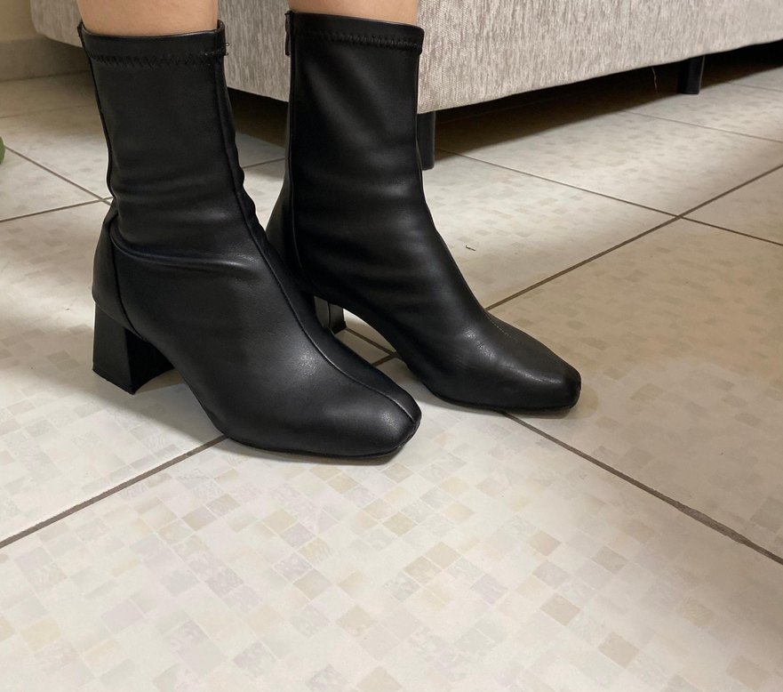 Siyah Deri Tokalı İnce Topuklu Kadın Bot