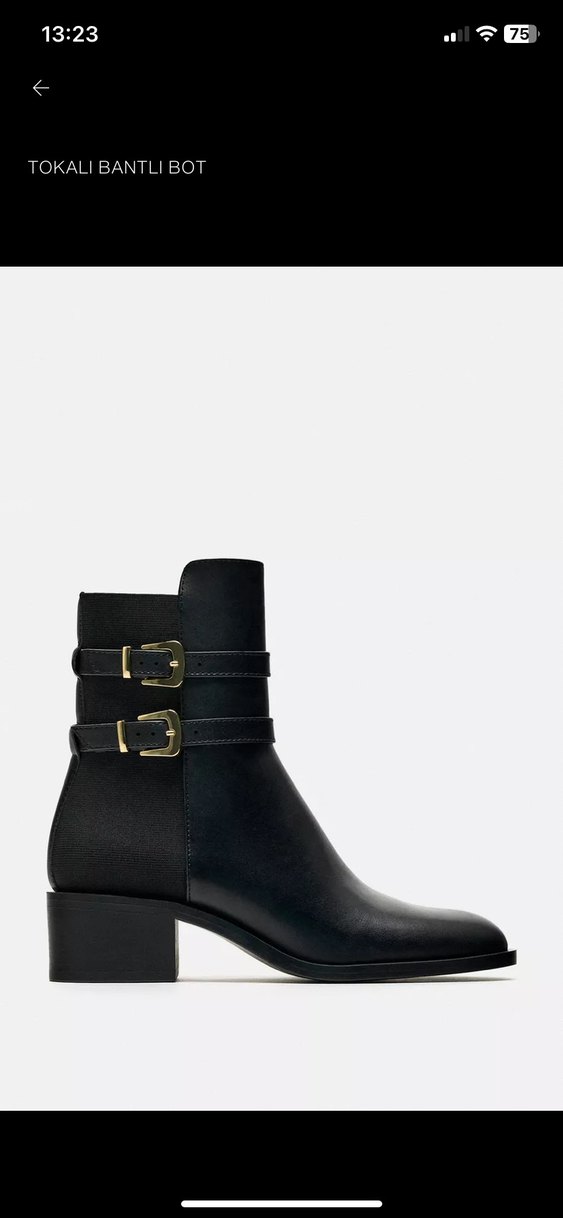 Siyah deri, tokalı ve blok topuklu kadın botları, minimalist ve çağdaş tasarımla günlük kullanım için uygundur.