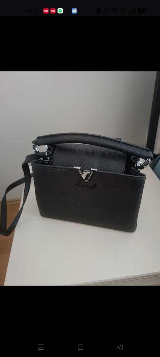 Tokalı tasarıma sahip siyah deri kadın çanta, baskılı deseniyle günlük kullanıma uygundur. Minimalist ve trend sokak stili için idealdir. Orijinal değildir. Hiç kullanılmadı.