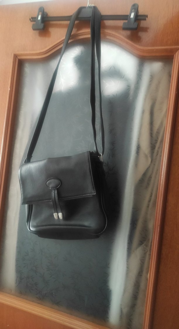 Siyah deri tokalı kadın çantası, minimal ve günlük sokak stili için uygundur. Düz, desensiz tasarıma ve ayarlanabilir askıya sahiptir.