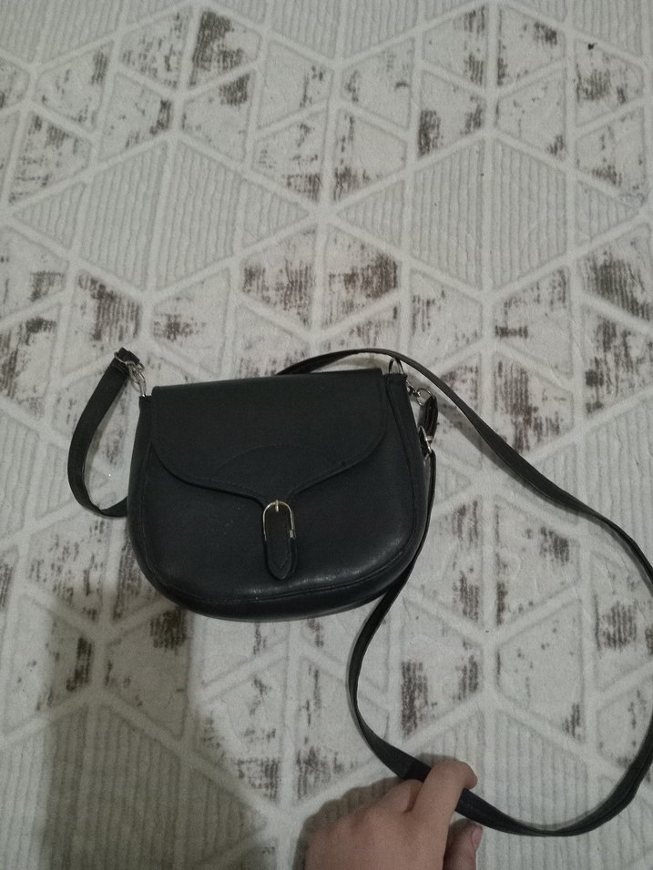Siyah deri tokalı kadın çantası, sokak modasına uygun sade ve desensiz tasarıma sahiptir.
