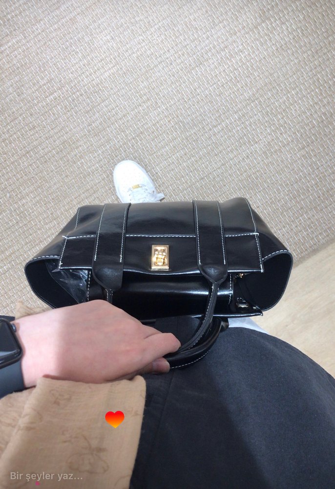 Siyah Deri Tokalı Kadın Çanta