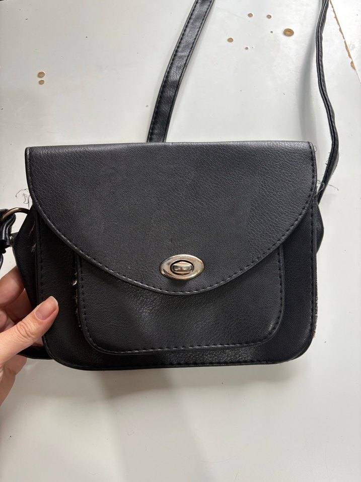 Bu siyah deri kadın çanta, tokalı ve desen içermeyen sade bir tasarıma sahiptir. Günlük kullanım için goth stiline uygundur.