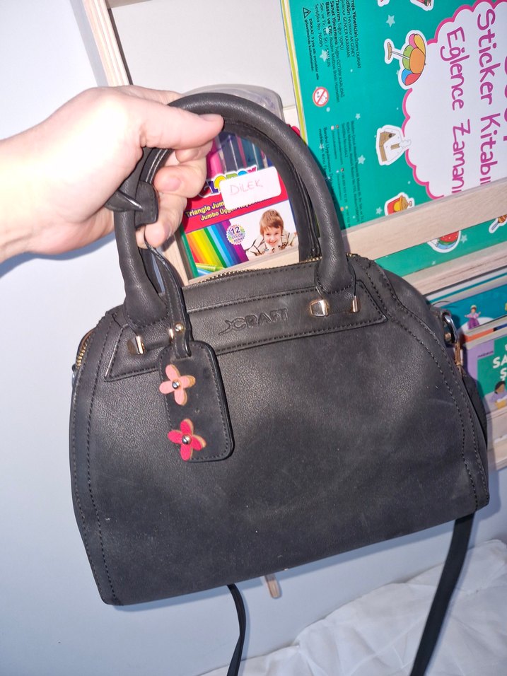 Siyah Deri Tokalı Kadın Çanta