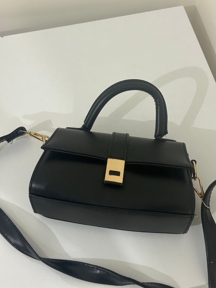 Siyah deri, tokalı kapamalı kadın çantası. Hiç kullanılmadı 120 tl