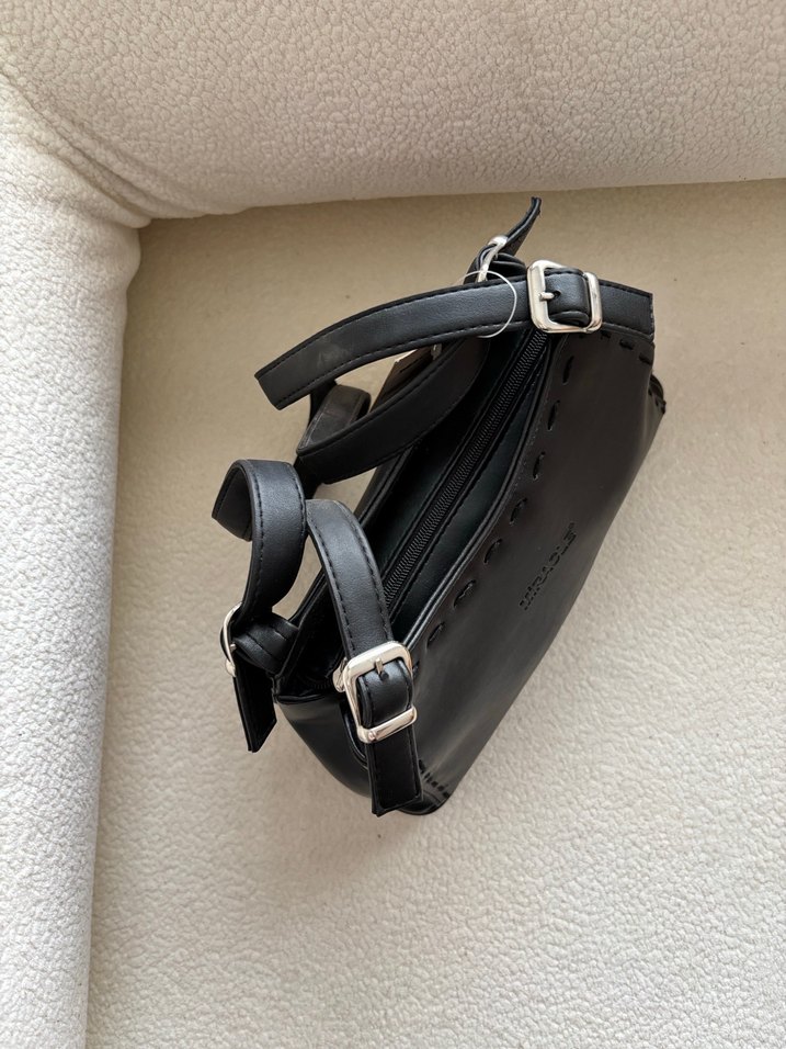 Siyah deri tokalı kadın çanta, minimalist gotik tarzda, günlük kullanıma uygun, desensiz yüzeye sahip. Mağazamızı kapattığımız için elde kalanları uygun fiyata satıyorum.