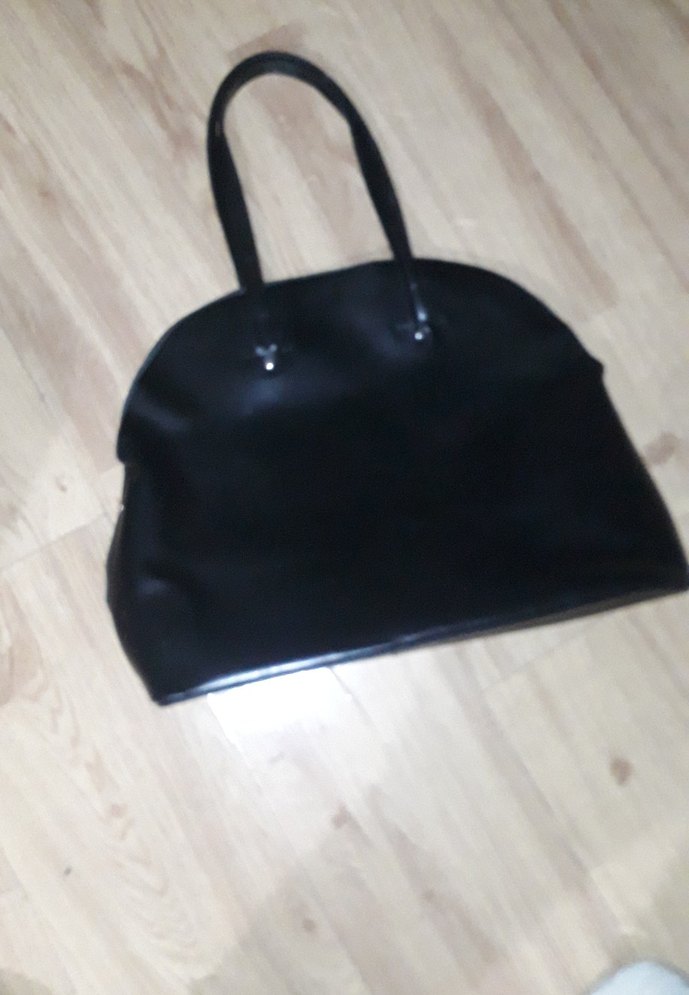 Siyah deri tokalı kadın çantası, minimalist ve gotik tarzda. Günlük kullanım için uygun, koyu ve desensiz tasarım.