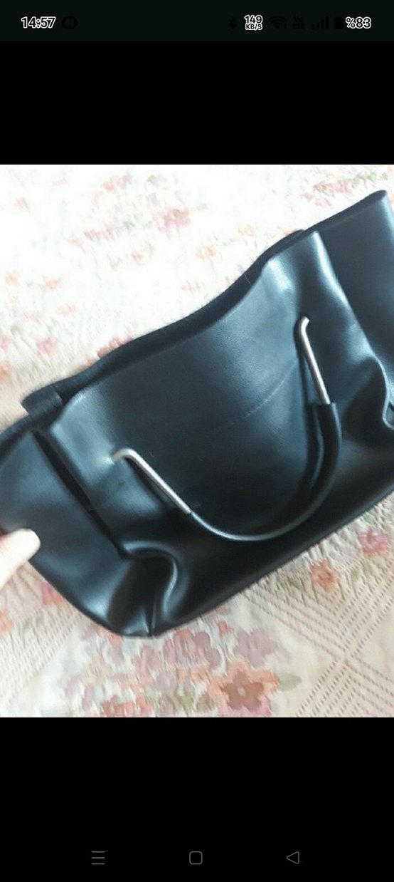 Siyah Deri Tokalı Kadın Çanta