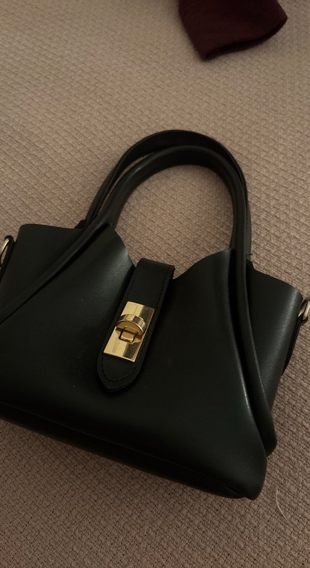 Siyah deri, tokalı kapamalı, Paris esintili modern klasik tarzda kadın çanta. Günlük kullanıma uygundur.