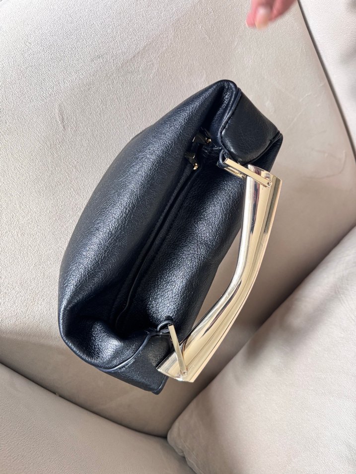 Siyah deri tokalı kadın çantası, desen içermeyen yüzeyi ve çağdaş, minimalist tarzıyla günlük kullanıma uygundur.