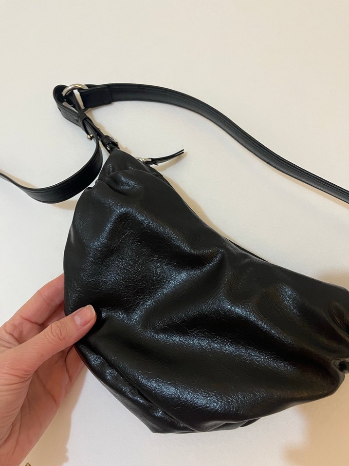 Siyah deri, tokalı kayışlı kadın çanta. Minimalist tasarımıyla sokak modasına uygun, günlük kullanıma ideal. Moda öncülerine hitap eder. Yenidir hiçbir deforme yoktur, sadece 1 defa kullanıldı
