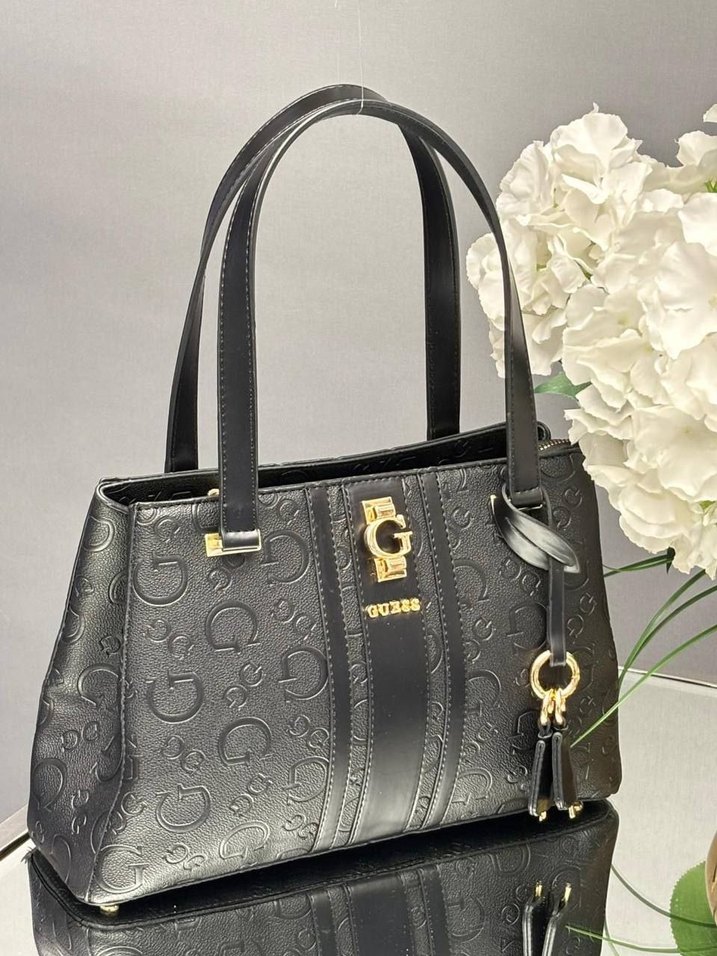 GUESS - erenia Ölçüler : 33 cm x 22 cm A kalite Siyah deri çanta, baskılı deseni ve tokalı detaylarıyla modern klasik stili yansıtıyor. Parlak dokusuyla iş yaşamında ve günlük kullanıma uygun.