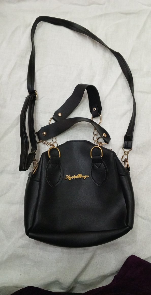 Siyah deri tokalı kadın çantası, parlak yüzeyli ve baskılı desene sahip. Minimalist goth tarzı ve günlük kullanıma uygun trendy casual model.