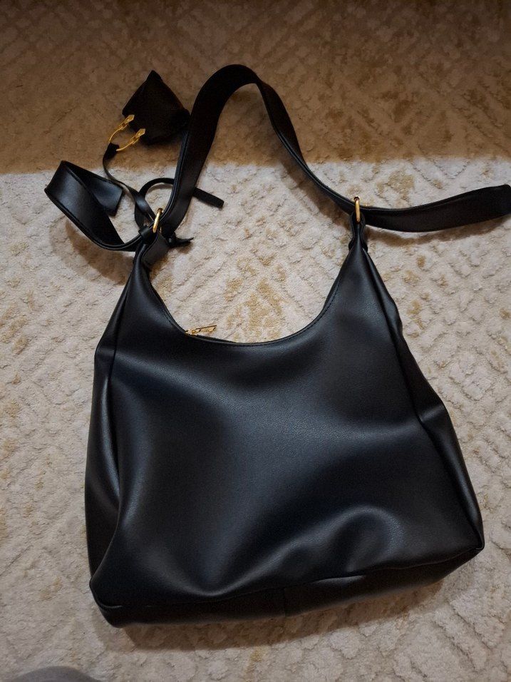 Siyah Deri Tokalı Kadın Çantası