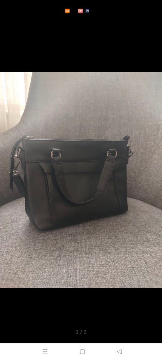 Tokalı detaylara sahip siyah deri kadın çantası. Desensiz, iş ve günlük kullanıma uygun, trend gotik stilde.