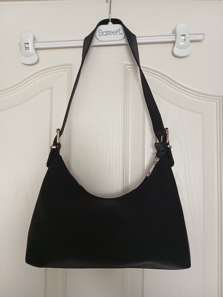 Siyah Deri Tokalı Kadın Çantası