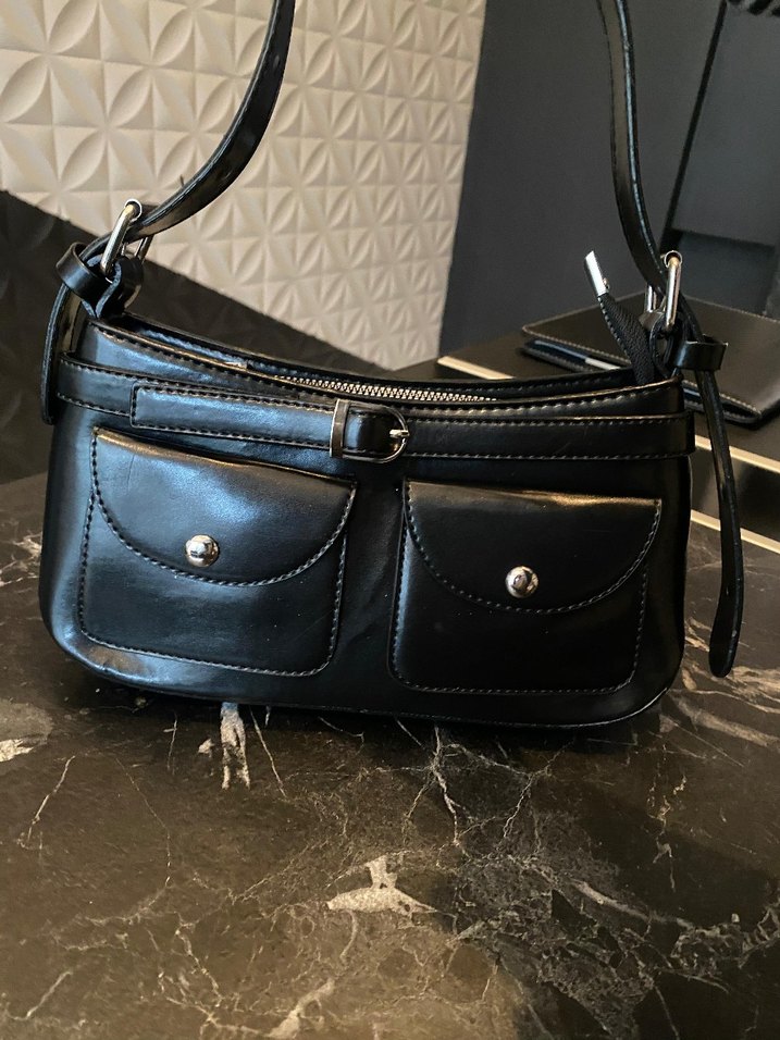 Siyah Deri Tokalı Kadın Çantası
