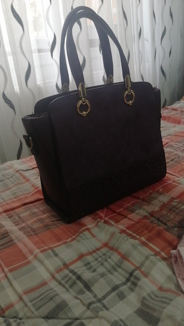 Siyah deri, tokalı kadın çantası. Klasik ve gotik tarzda, günlük kullanıma uygun, desensiz ve koyu renkli.