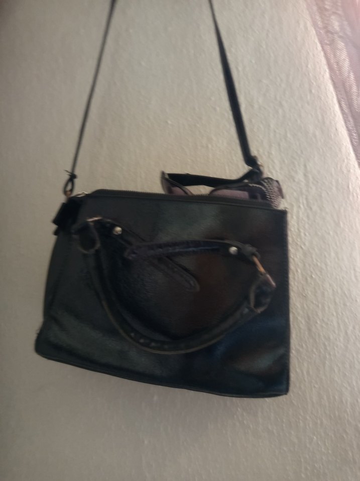Tokalı detaylara sahip siyah deri çanta, minimalist ve gotik tarzda. Günlük kullanım için uygun, trend günlük görünüme sahip.