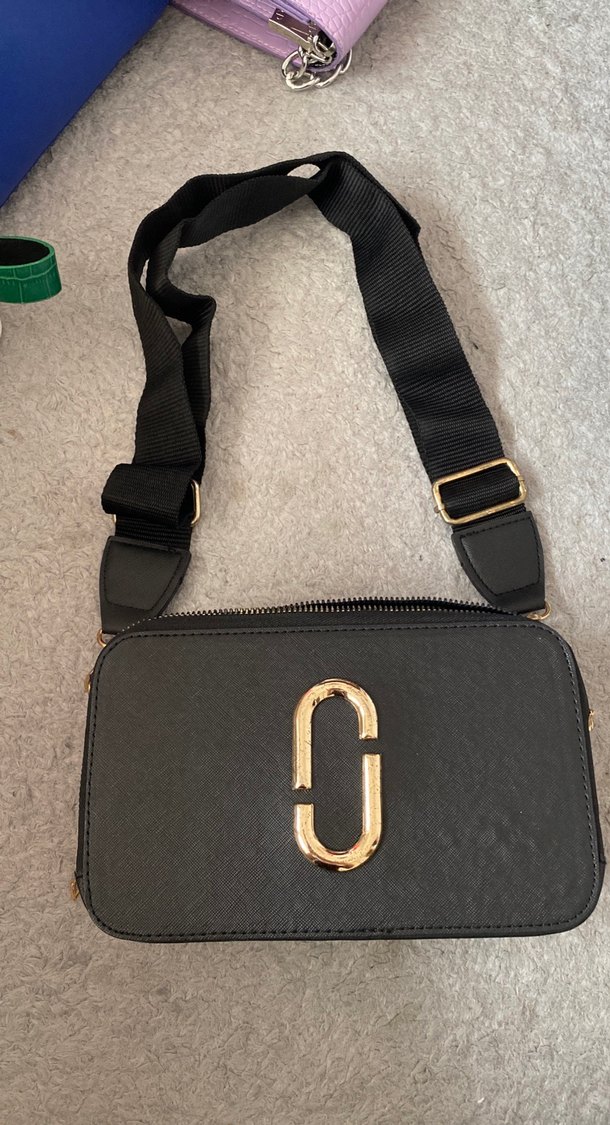 Siyah deri tokalı çapraz çanta, düz desensiz tasarımıyla günlük kullanıma uygundur. Trendy casual tarzlar için ideal.